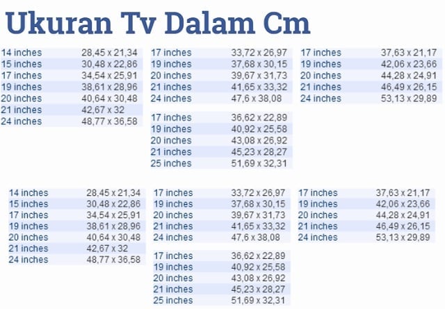 Ukuran TV dalam Cm
