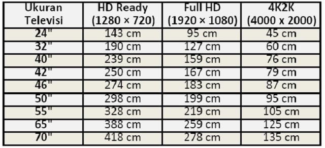 - Ukuran TV yang tepat = Jarak pandang/3