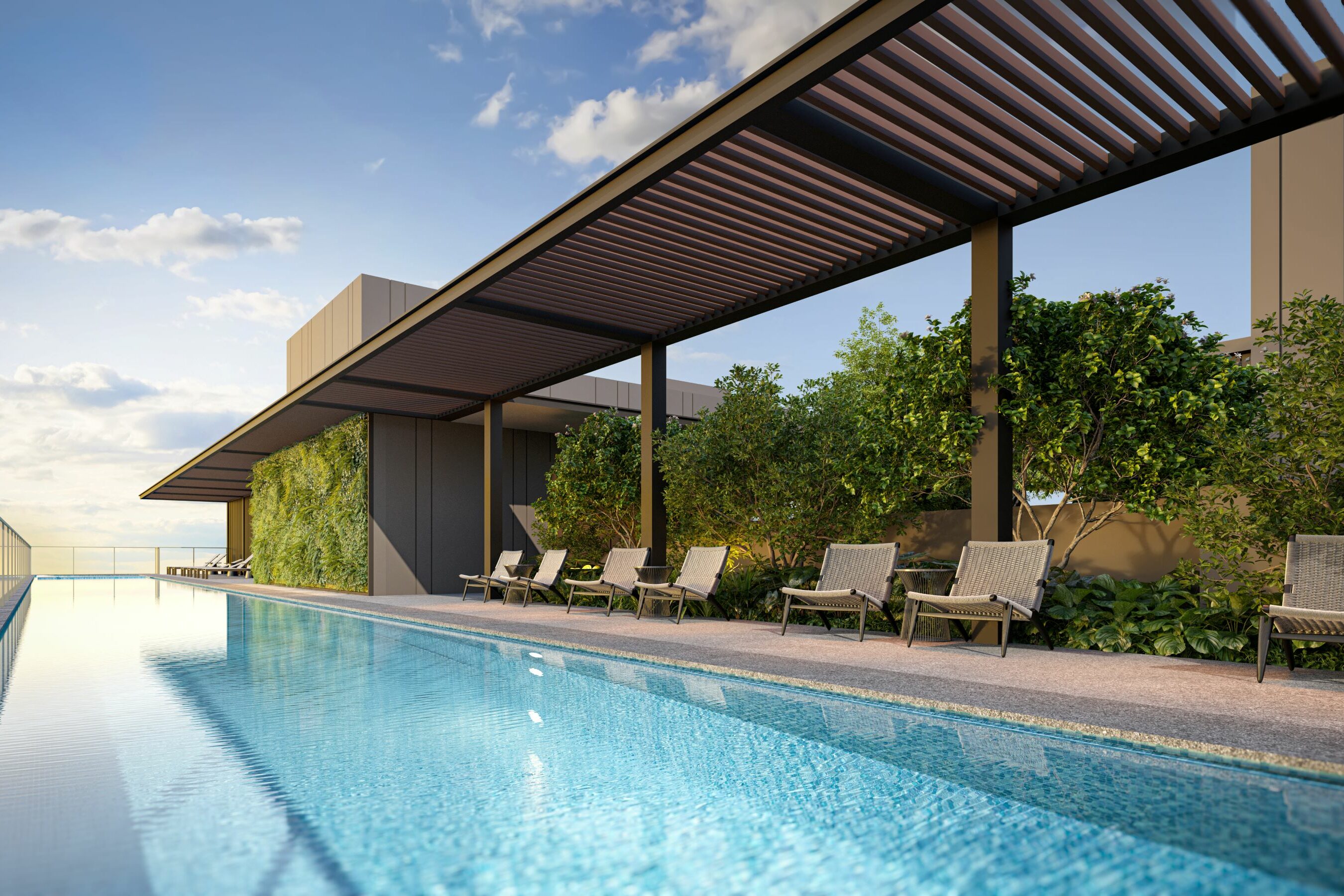 The Sky Verandah (rooftop) amenities include a 35m lap pool, spa pool, fitness room, fitness deck, and sun deck; topped off with a sky pavilion that offers views and a peaceful atmosphere for entertaining or relaxing. Additionally, the development also provides 105 carpark lots, including EV charging provisions, and 18 bicycle lots.